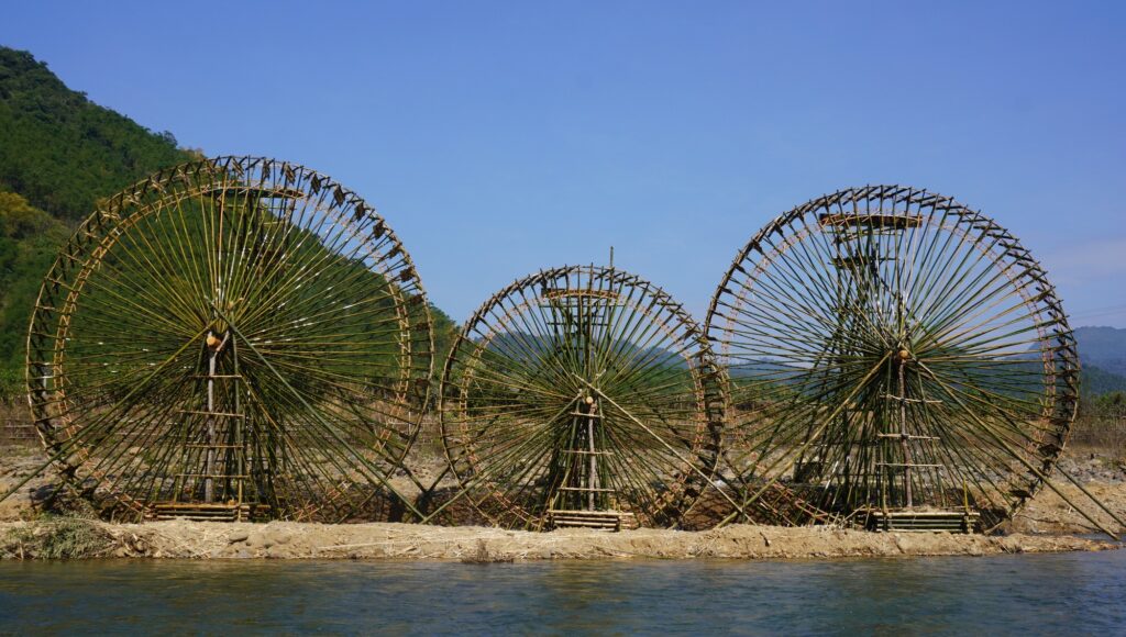 Những chiếc guồng nước khổng lồ được nhiều bản làng vùng cao Thanh Hóa chế tạo để lấy nước vào đồng ruộng, phục vụ cày cấy