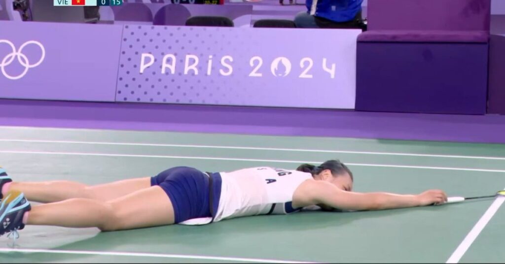 Tình huống Beiwen Zhang nằm sàn, cứu cầu rơi cả vợt vẫn mất điểm trước Thùy Linh