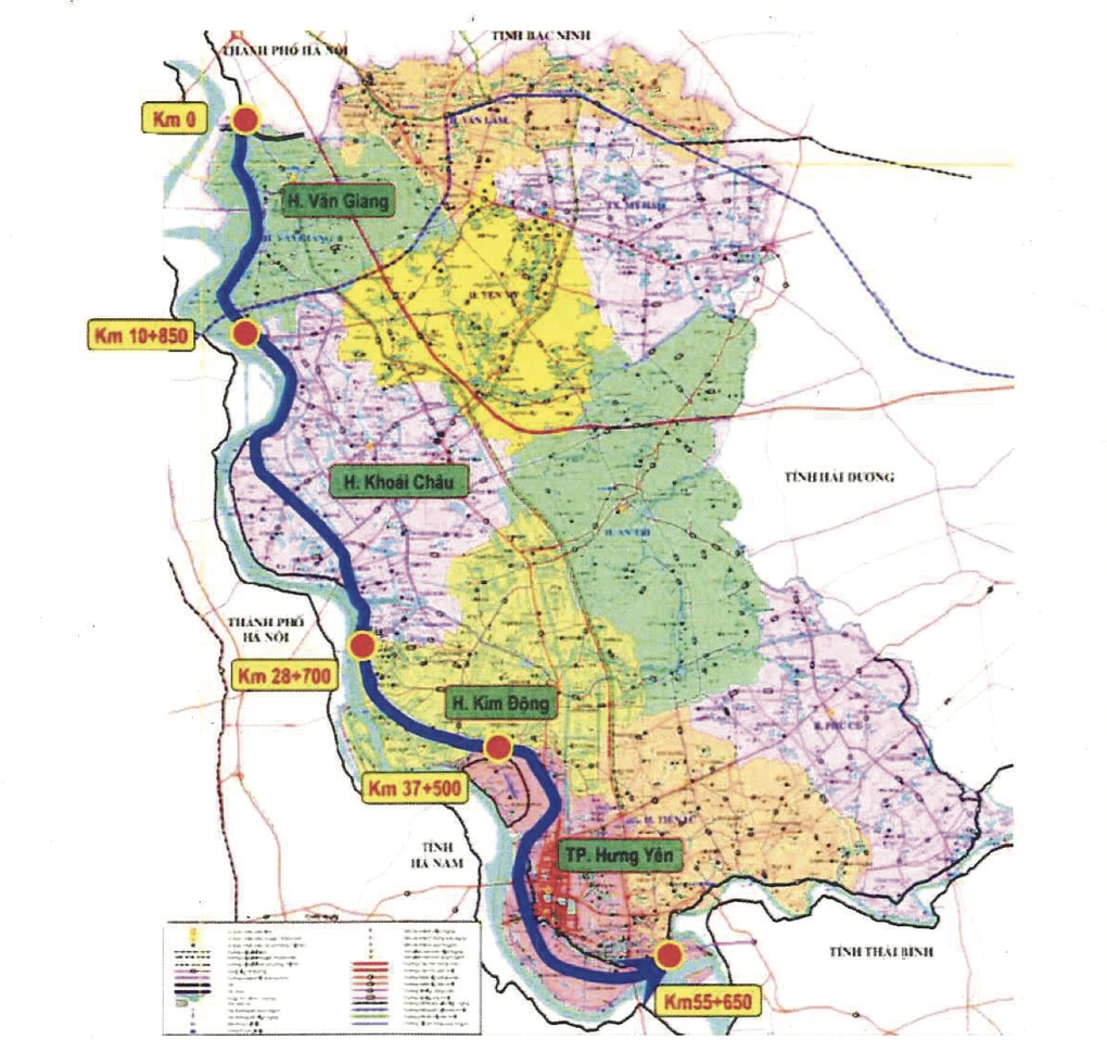 Tuyến đường kết nối di sản văn hóa, phát triển kinh tế dọc sông Hồng đi qua địa phận 3 huyện (Văn Giang, Khoái Châu, Kim Động) và TP Hưng Yên có chiều dài 55,68km, tổng mức đầu tư gần 10.000 tỷ đồng.