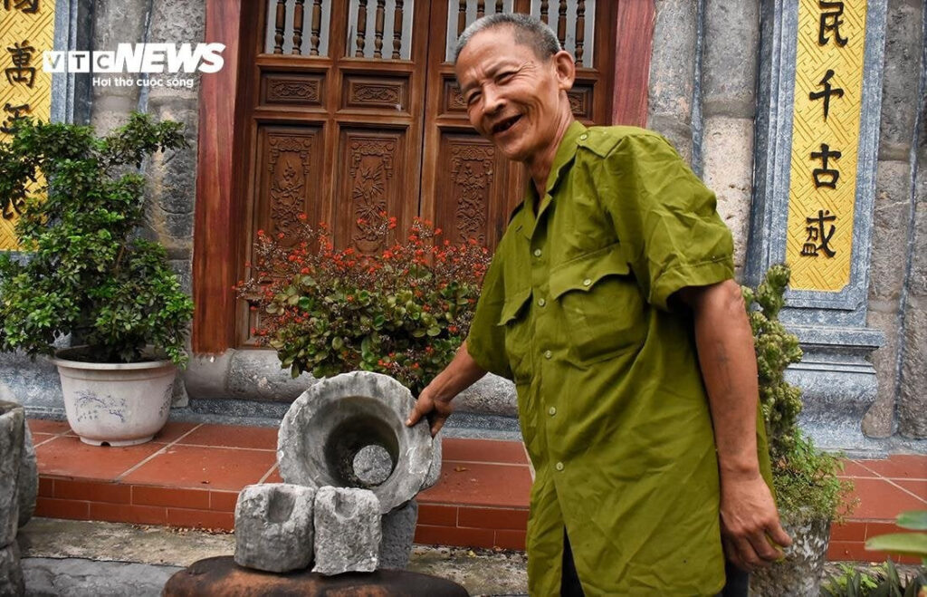 Hơn 40 năm đi sưu tầm cối đá, trục đá, ông Trần Công Nhẫn (64 tuổi, quê Thái Bình) thường nói vui rằng ông đã dành cả thanh xuân để theo đuổi đam mê “khác người”.