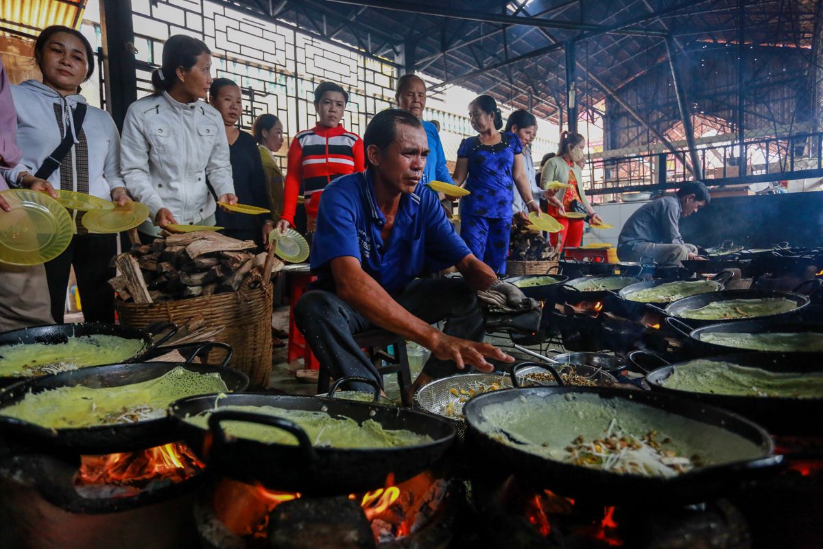 Mỗi ngày, chùa phục vụ khoảng 6.000 – 7.000 chiếc bánh xèo chay