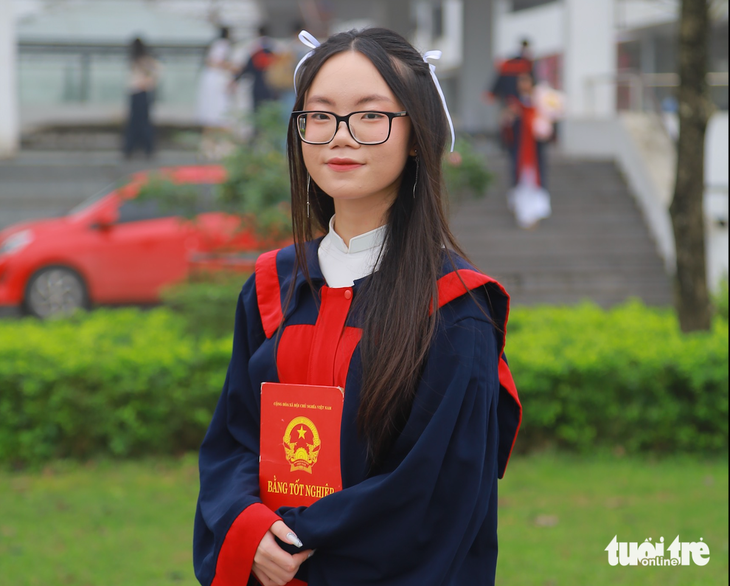 Đinh Thị Bích Ngọc, học sinh lớp 12 Anh 1, Trường THPT chuyên Lương Văn Tụy (TP Ninh Bình, Ninh Bình) trong lễ tốt nghiệp – Ảnh: B.N.